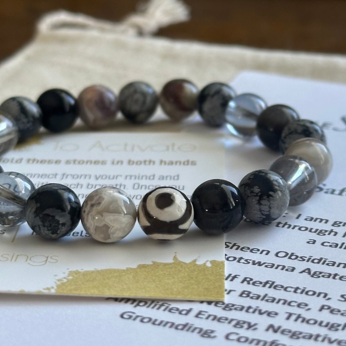 Together, these 8mm sized natural gemstones create a bracelet that offers strong spiritual protection, emotional resilience, and grounding energy while encouraging self-reflection and positive transformation.