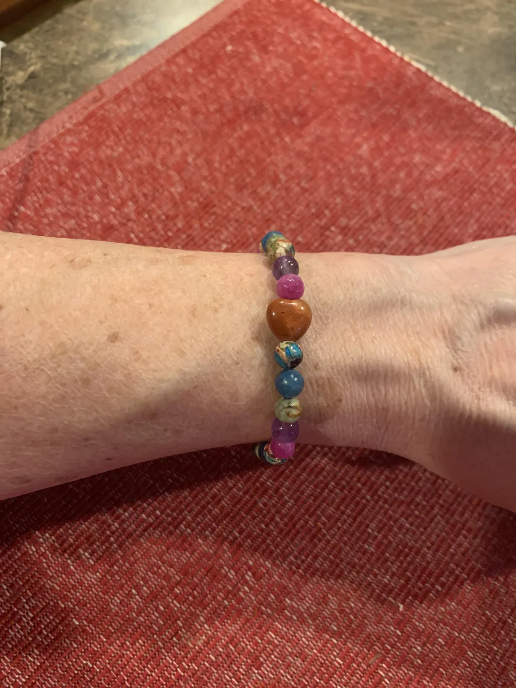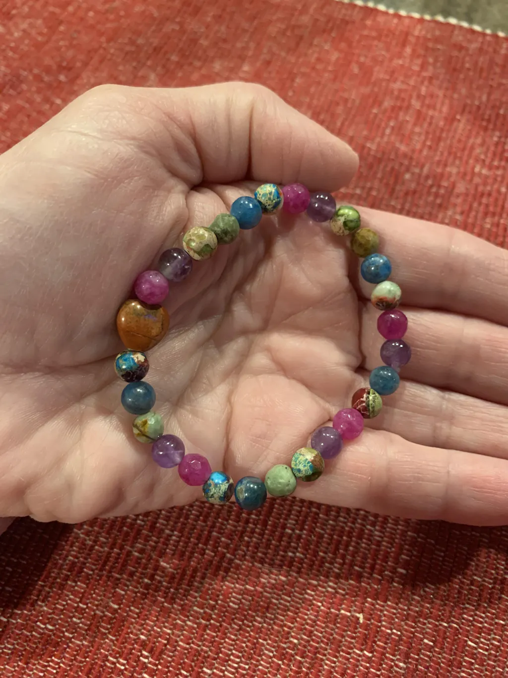 Love in Color is a wonderful rainbow of 6mm sized gemstones radiating loving energies. A Red Jasper heart is the focal point for this special February bracelet. We've made sure to incorporate February's Birthstone of Amethyst into the mix, which brings calming and tranquil peace.