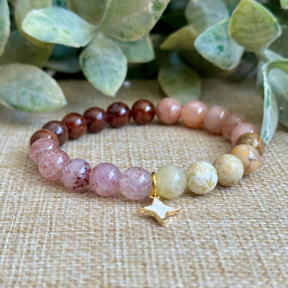Designed with 8mm sized gemstones, The Passion Project blends warmth, drive, and clarity into one radiant flow. Soft pinks and golden tones move like a sunrise, symbolizing ideas coming to life. It is a reminder to follow what lights you up while staying grounded in purpose.