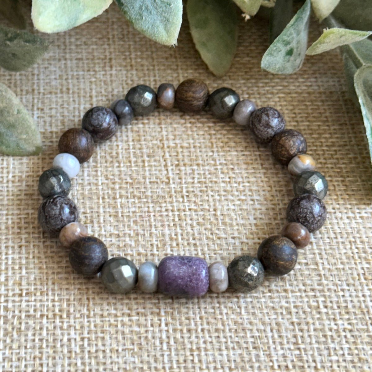 ~ Lepidolite ~ Crazy Lace Agate ~ Pyrite ~ Matte Bronzite ~ Brown Snowflake Obsidian