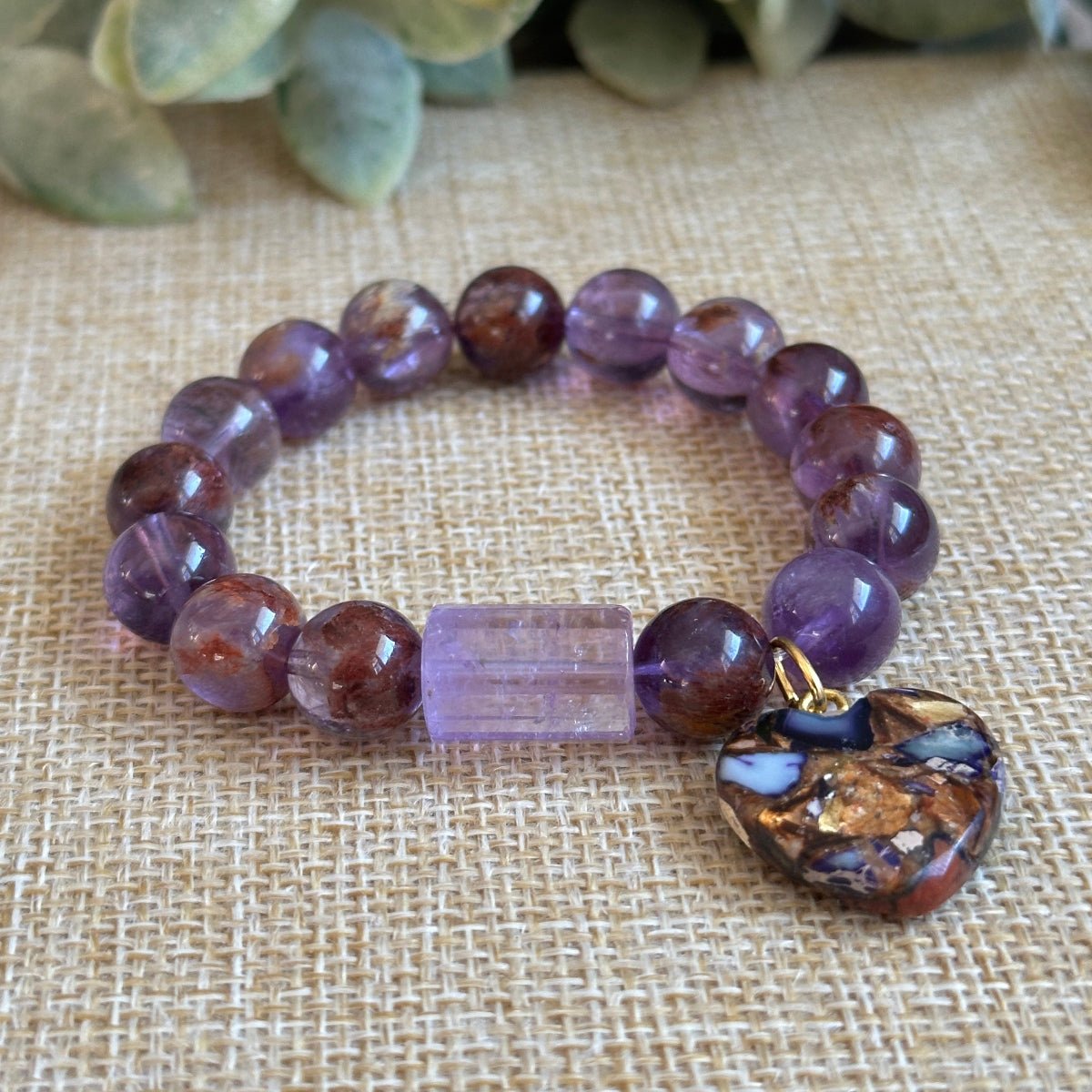 Designed with 10mm sized gemstones, Melody Stone, also known as Super Seven or Sacred Seven, is a rare and powerful crystal that contains a natural combination of seven minerals: Amethyst, Clear Quartz, Smoky Quartz, Cacoxenite, Rutile, Goethite, and Lepidocrocite. Though it may not visibly show all seven minerals, its energetic properties are believed to encompass the full spectrum. Known for its high vibrational energy, Melody Stone activates and aligns all chakras, enhances spiritual growth, deepens intuition, and supports emotional healing. It’s often used in meditation and transformation work, making it a favorite for those walking a path of deep inner development.