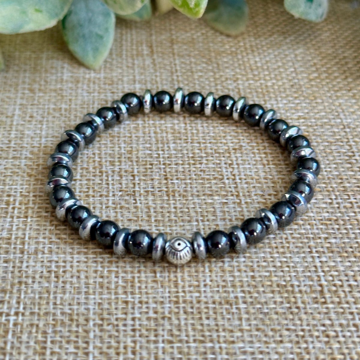 Designed for you with 6mm sized hematite stones, this simple design absorbs negativity and promote stability, creates a powerful shield around the wearer.