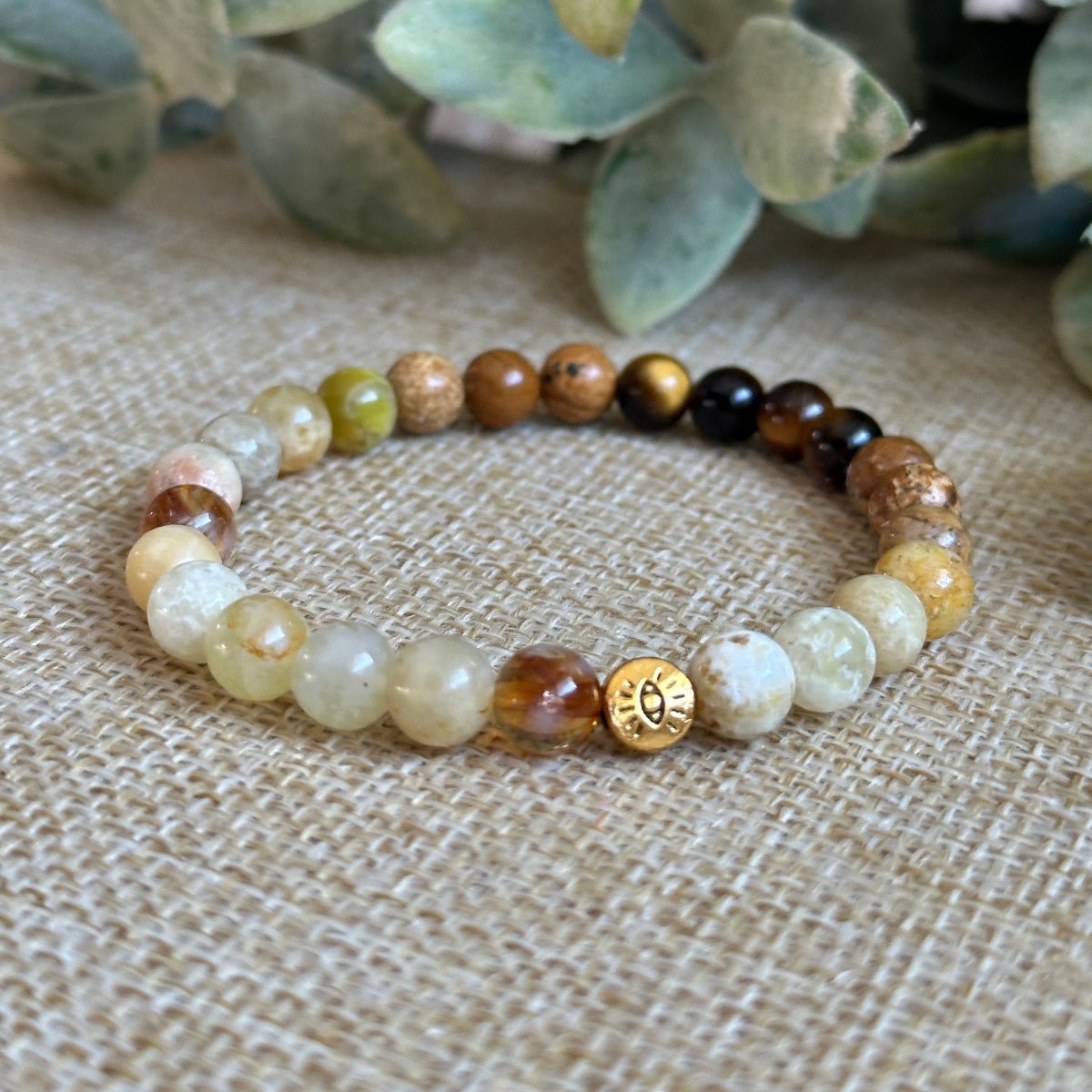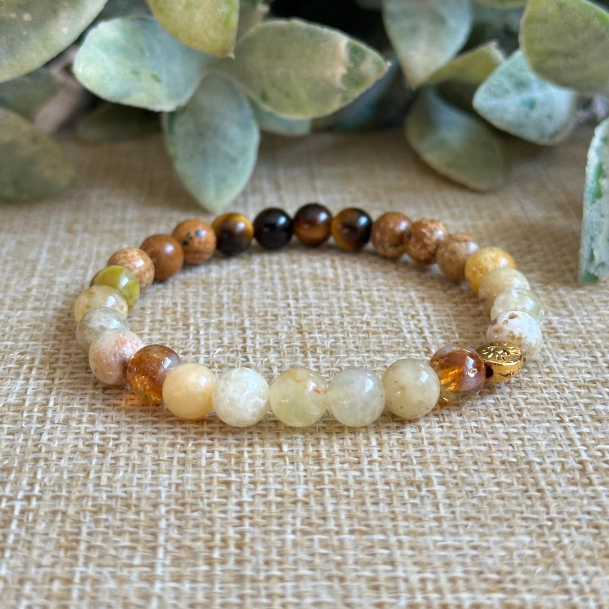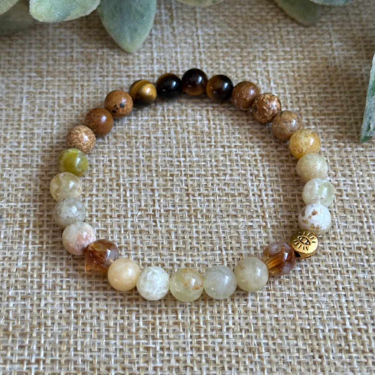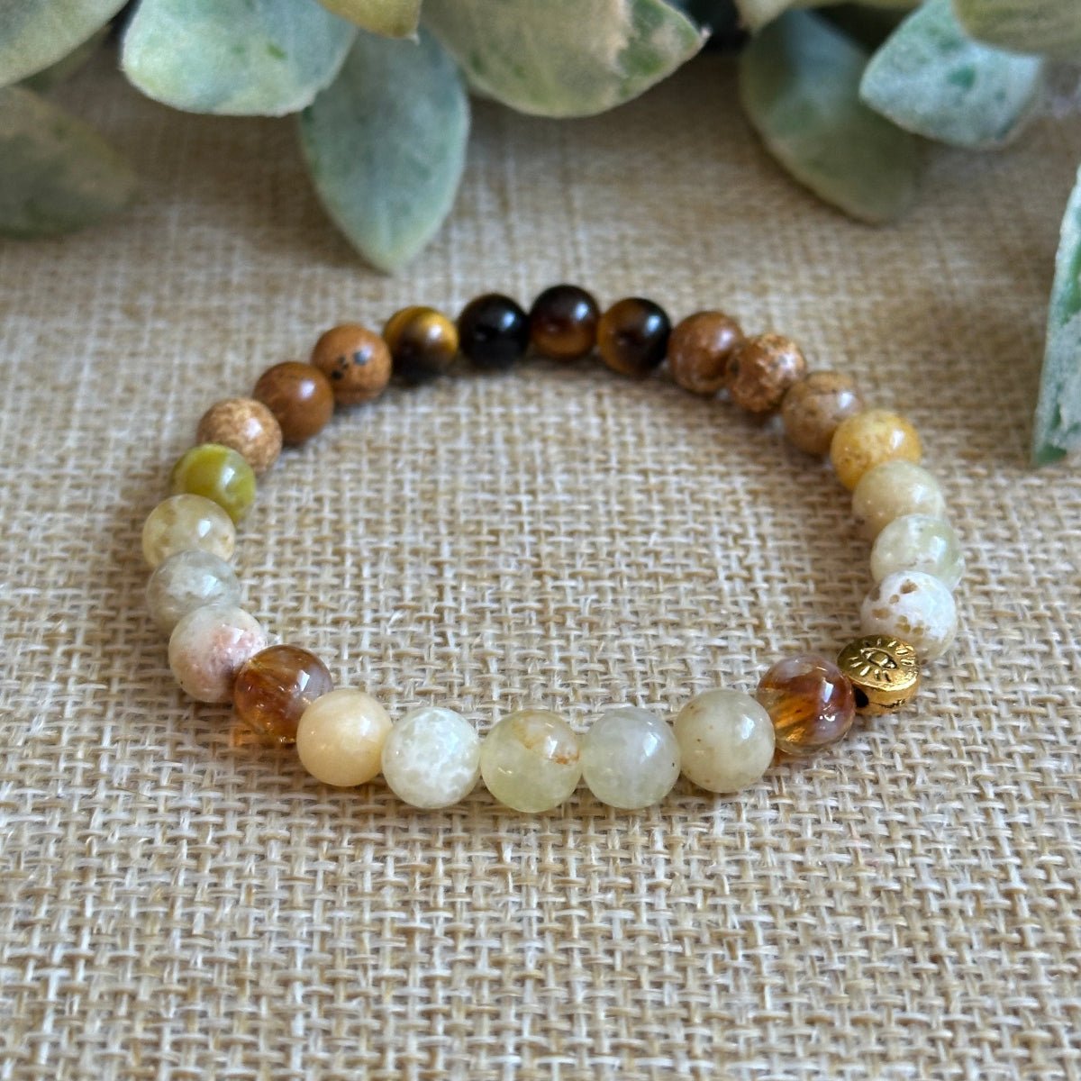 Step into your strength with Sunny ~ a bracelet designed to energize and align your Solar Plexus and Sacral Chakras. This 6mm beaded beauty blends warm yellows and golden earth tones, symbolizing personal power, self-trust, and steady motivation. Whether you're navigating decisions, setting boundaries, or simply showing up as your boldest self, this bracelet offers a quiet but steady reminder: your light is meant to shine.